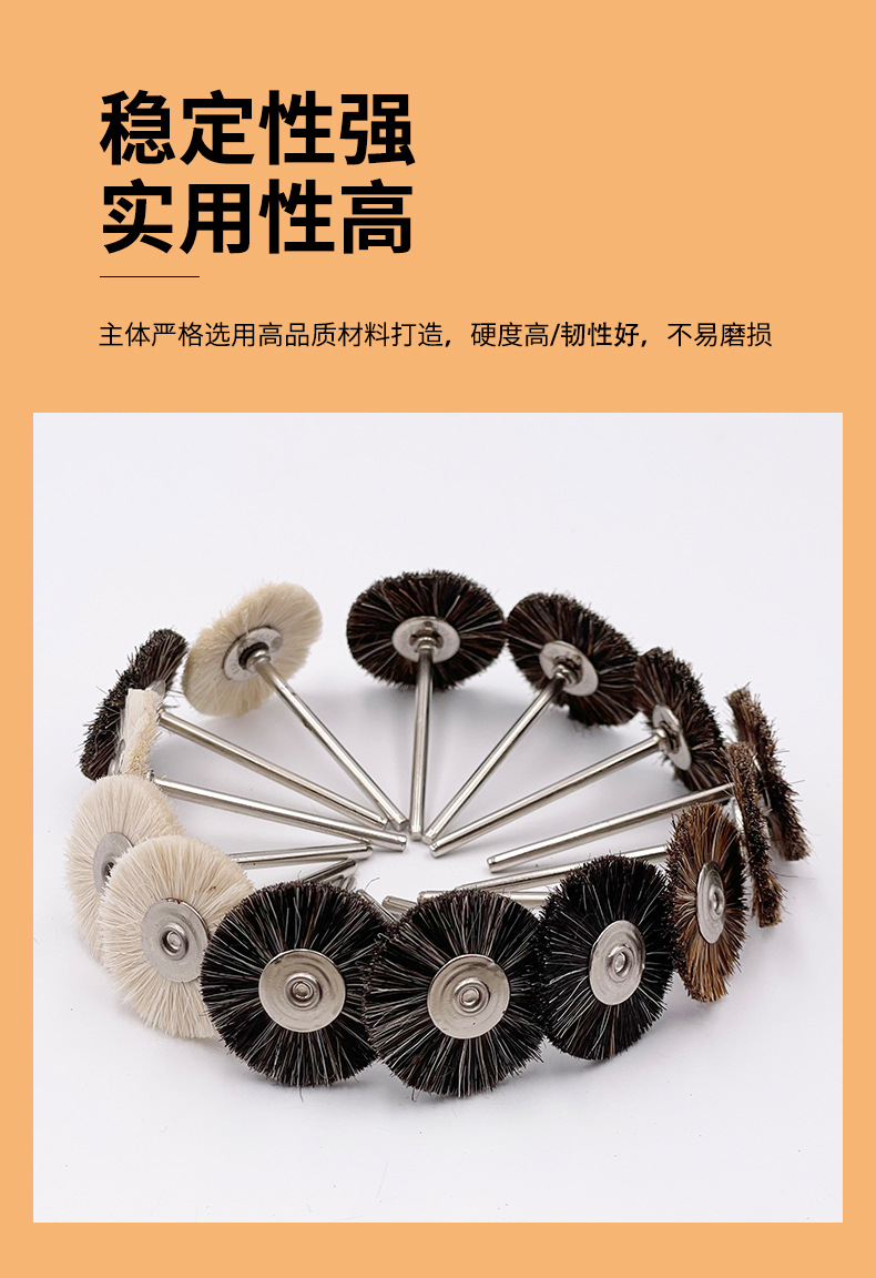 廠家供應(yīng)牙科技工帶柄鬃刷 拋光輪黑棕刷 齒科工廠材料